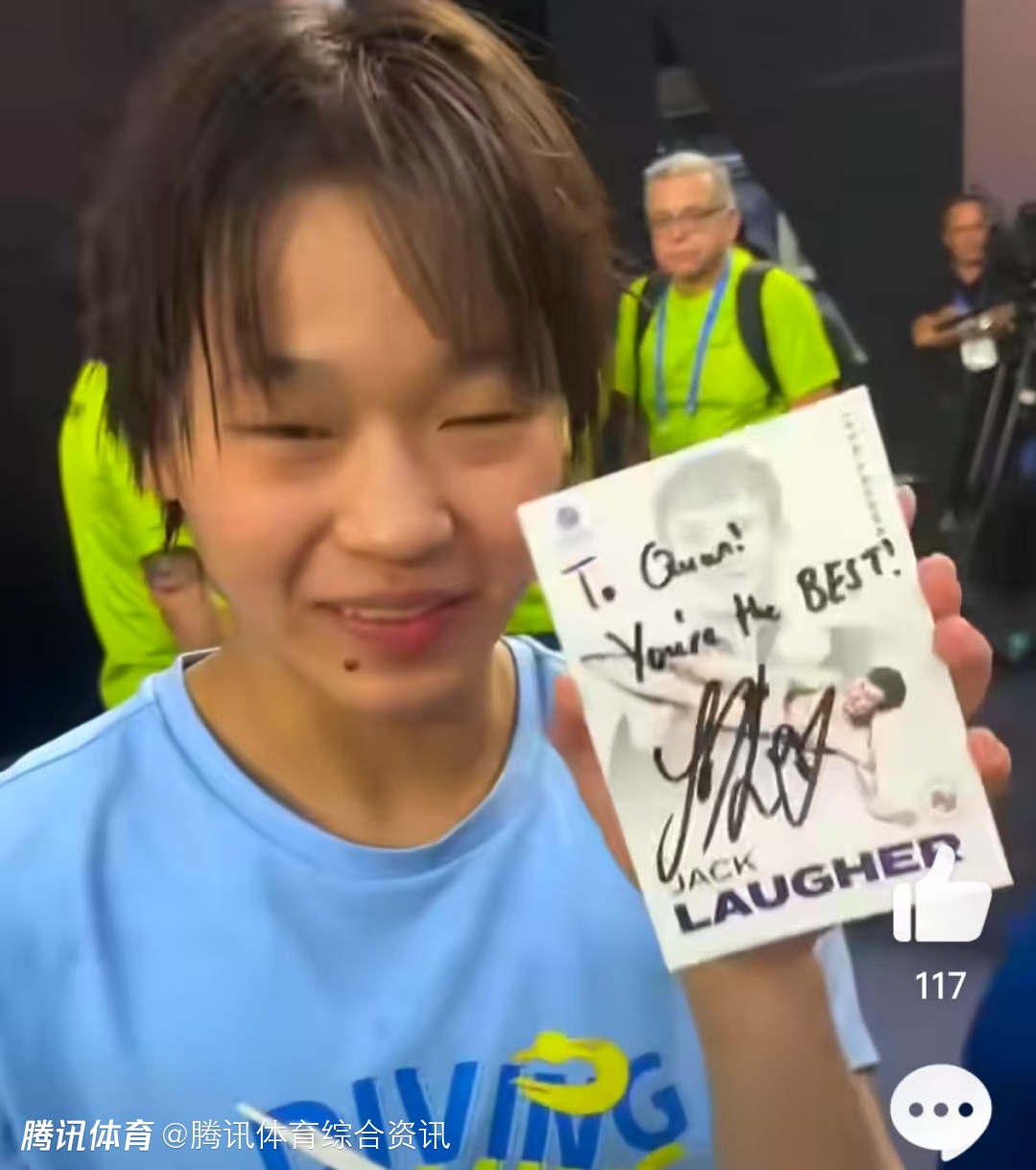 国际泳联在赛后晒出一段小花絮,全红婵变身“小迷妹”,成功追星英国跳水运动员杰克-拉夫尔。杰克送上to签的同时写道:“全,你是最棒的!”拿到杰克签名照的全红婵既兴奋又羞涩,直呼:“我也有了,我也有了!”