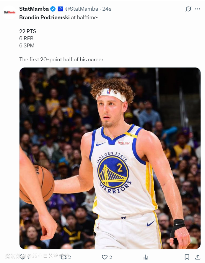 次节湖人的策略还是放掉波杰姆斯基双人包夹库里,结果波杰7中5+三分4中3拿到13分3篮板1助攻1抢断,波杰还完成了一个半场的压哨三分打板,半场波杰22分6篮板6三分,他完成生涯首次半场20+,这个夜晚他似乎是巅峰克莱的存在。