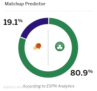 凯尔特人胜率80.9%,太阳胜率19.1%。