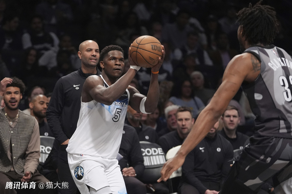 森林狼105-90击败篮网,爱德华兹15投10中,其中三分球10投5中,得到28分5篮板3助攻2抢断,他连续两个赛季得分突破2000大关,以23岁的年龄,成为NBA历史达成这一纪录的最年轻分卫。