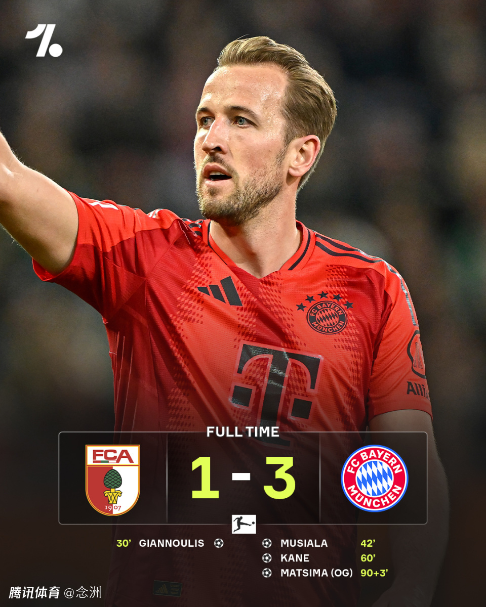 德甲第28轮,拜仁客场3-1逆转十人奥格斯堡,先赛9分领跑积分榜。吉安努利斯首开纪录,穆西亚拉破门扳平,但是下半场伤退,泽西格尔被罚出场,奥利塞助攻凯恩反超,补时萨内造乌龙。