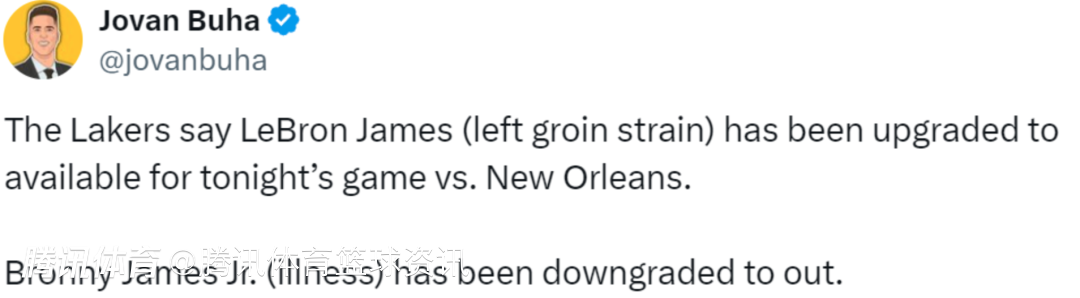 2025-04-05 09:30北京时间4月5日,今天上午10点30分,湖人将坐镇主场对阵鹈鹕,赛前湖人官方更新了本场比赛的伤病报告。
