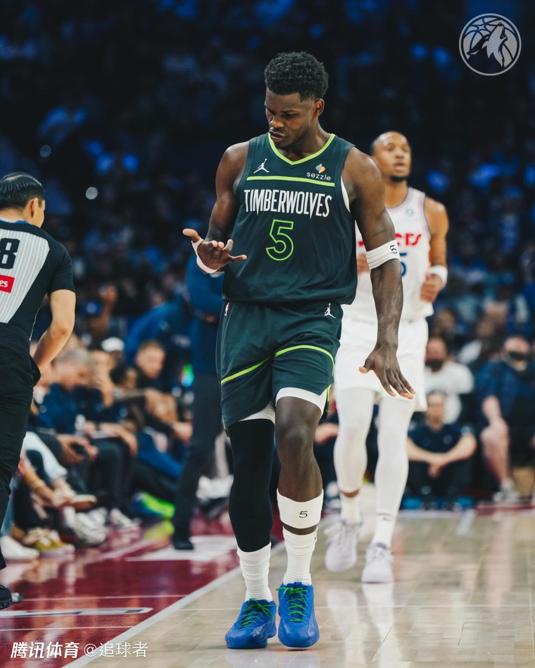 末节爱德华兹突破上篮,外线连中两记三分展现得分爆发力,戈贝尔输送火力,森林狼一波18-8领先到11分;随后森林狼断电,76人一波13-3瞬间追到1分;最后1分多钟,爱德华兹轰进关键三分以及突破抛投得分,费城继续强势反扑,7.3秒华子三分制胜一击,最终森林狼拿下比赛。