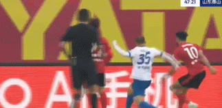比赛的第47分钟,奥莫伊胡安弗禁区右侧横传,无人盯防的谭龙头球冲顶破门,1比1!