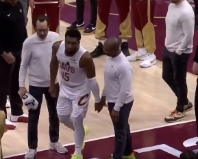 从慢动作回放来看,米切尔当时是在一次上篮过程中与对手发生了碰撞,随后没能第一时间退防,而在国王队进攻期间,米切尔从国王队的半场往回追,结果踩到了基恩-埃利斯的脚上,导致自己受伤。米切尔随后一度倒地不起,骑士队也赶紧请求暂停,工作人员进场检查。之后米切尔起身,自己一瘸一拐走回更衣室,现场的球迷也为他送上掌声进行鼓励。