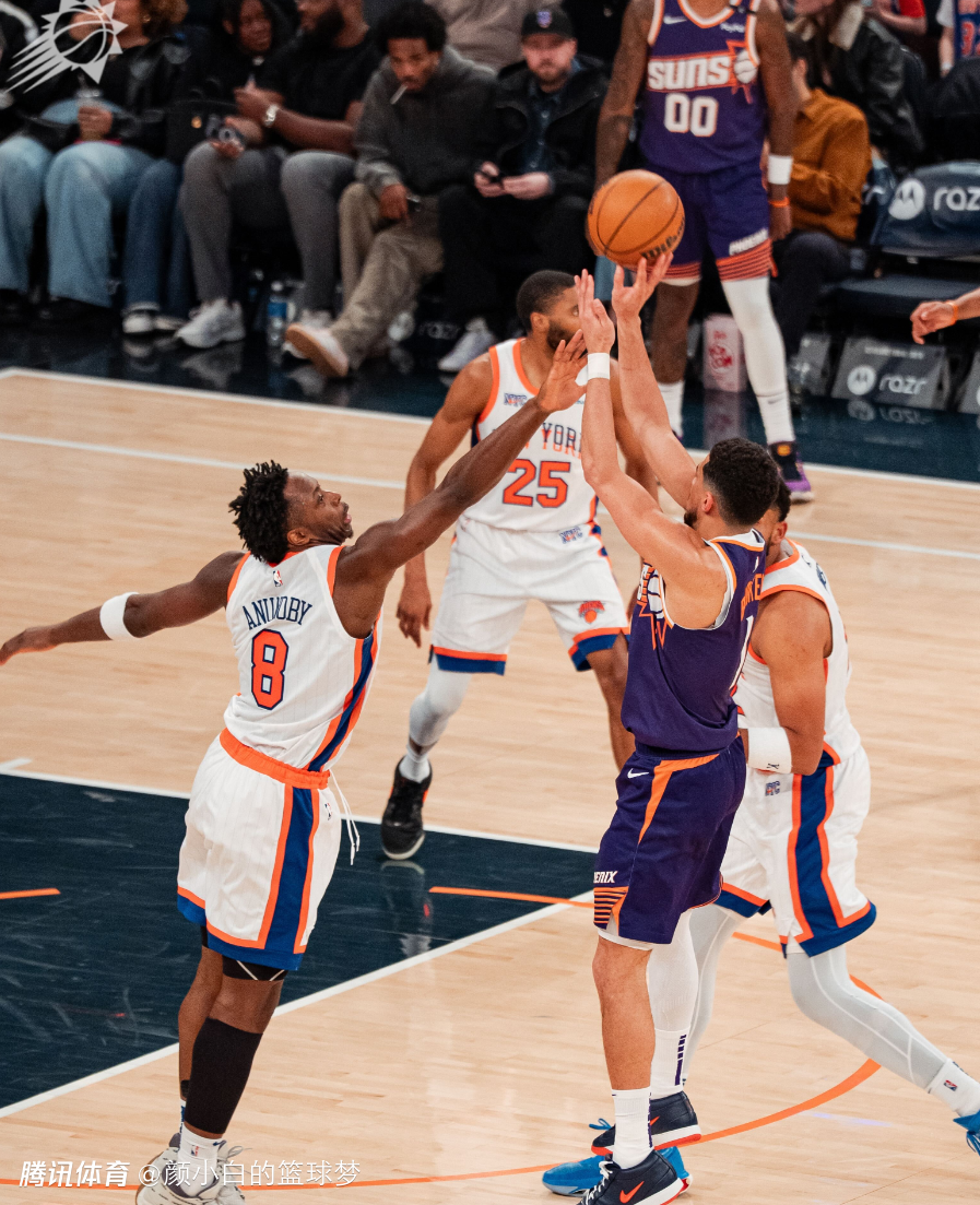 上图能说明布克有多难,他过掉了布里奇斯后阿奴诺比还在追防,唐斯在篮下顶着,布克次节9中4+罚球1中1拿到9分1篮板1助攻1抢断,布克上半场已经拿到20分,但他抬头一看球队已经落后到10分。