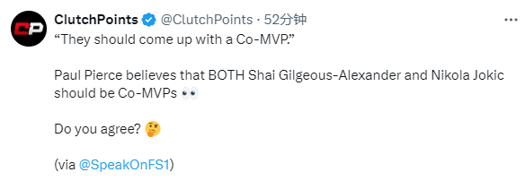 皮尔斯说道:“我认为联盟应该设立一个共同最有价值球员奖项。亚历山大和约基奇的表现都值得当选最有价值球员。”