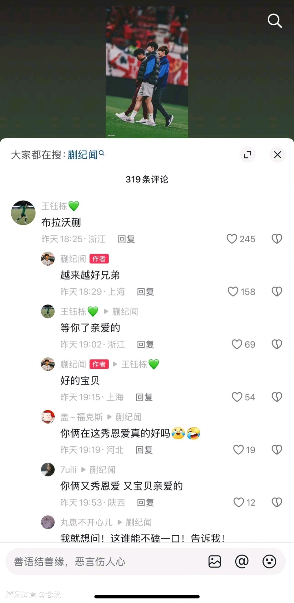 赛后,蒯纪闻晒出照片,纪念职业生涯首进中超比赛名单。王钰栋评论道:“等你了亲爱的!”蒯纪闻回复道:“好的宝贝。”这种甜蜜互动,也让球迷们乐开怀。