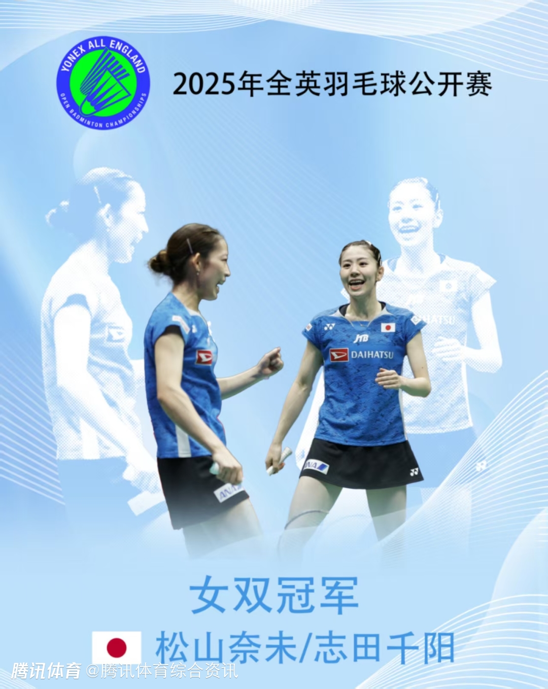 2022年和2025年志田千阳曾两次问鼎全英赛女双冠军,成为近十年首对两夺该赛事冠军的组合。2025年决赛中,她们击败队友福岛由纪/松本麻佑,时隔三年再度夺冠。