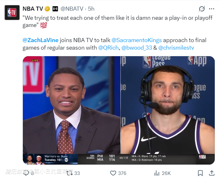 赛后NBA谈到拉文过去两场比赛拿到80分+15个三分球,拉文回应:“我们正试图把附加赛/季后赛之前的几场比赛看作是热身。”