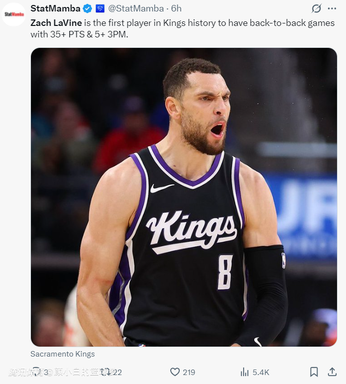5.拉文国王生涯两场40+8三分也是队史77年首人;