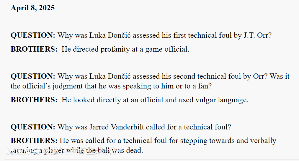 提问:为什么东契奇会被奥尔吹罚了他的第二次技术犯规呢?是不是裁判判定他当时是在和裁判说话还是在和球迷说话?
