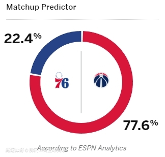 76人队胜率22.4%,奇才队胜率77.6%。