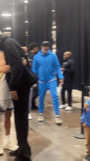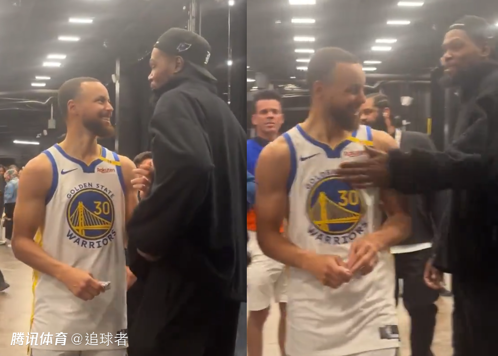 赛后杜兰特和库里在球员通道中拥抱热聊, 库里咧嘴大笑十分开心,杜兰特则是拍了一下库里的胸口,两人十分亲密的举动引热议,球迷调侃杜兰特要重返勇士了。