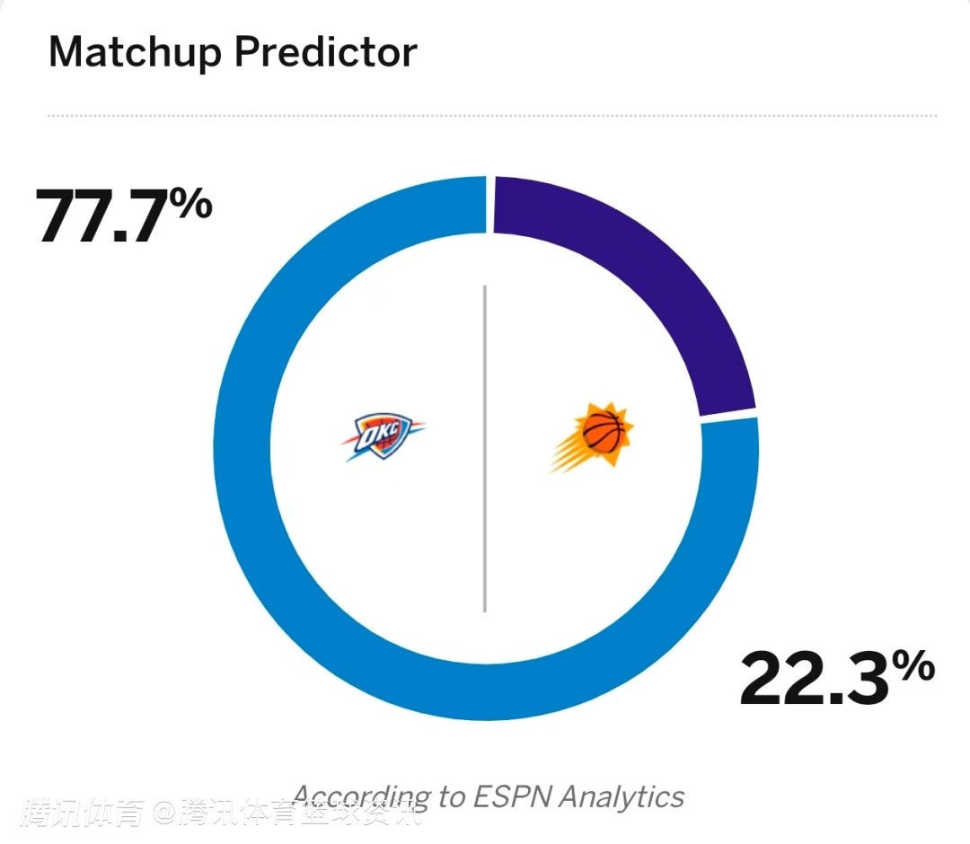 太阳队胜率22.3%,雷霆队胜率77.7%