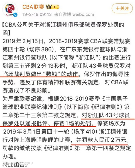CBA官方这一次为何只罚款,不禁赛?