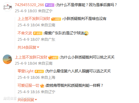 不少球迷对于CBA官方这个罚单引发外界热议,尤其是只罚款,不禁赛的处罚,相对于常规赛阶段,显然CBA公司处于“从轻处罚”的态度,希望双方完整阵容迎接G3的比赛。