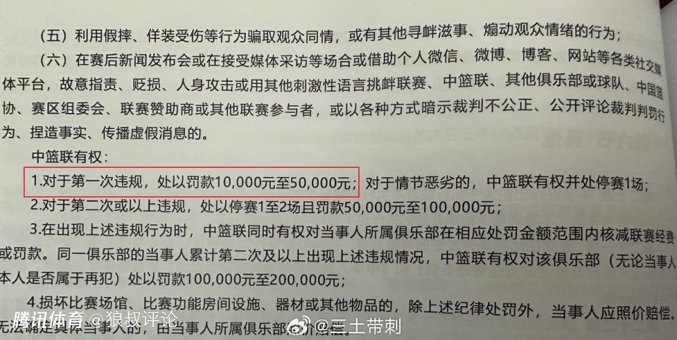 根据CBA官方的规则,第一次犯规是吹罚10000-50000之间,莫兰德罚款3万处于一个比较折中的处罚。