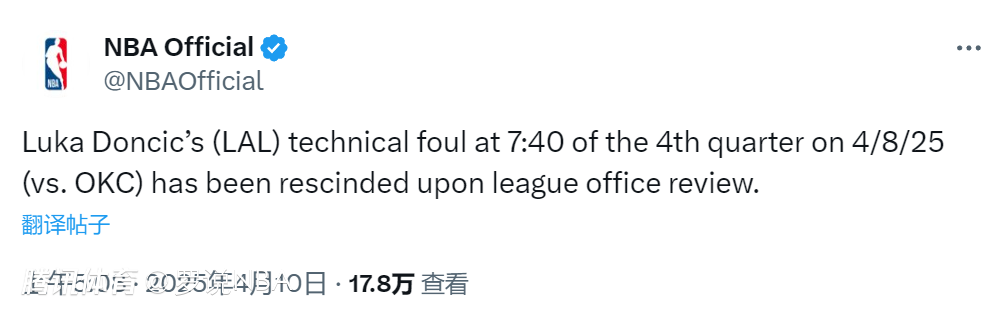 东契奇被驱逐太冤!NBA官宣撤销第二次技犯:湖人本有机会双杀雷霆
