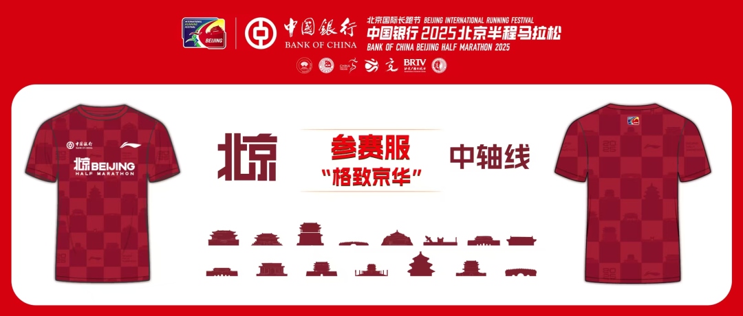 新闻发布会上,中国银行2025北京国际长跑节-北京半程马拉松参赛服“格致京华”正式亮相。本次比赛参赛服主色调为朱砂红,图案设计巧妙设融合了象征着历史与现代交汇的视觉元素,明暗格代表北京棋盘式城市空间布局和赛道的秩序与节奏感,中轴线上北京标志性建筑如钟鼓楼、故宫等与方格组成类似印章的视觉符号,寓意马拉松跑者穿越古今,在城市的脉络中奔跑,展现北京的文化底蕴与运动活力。