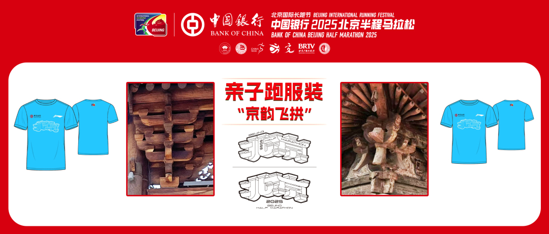 4月19日举行的亲子跑活动,参赛服以“京韵飞拱”命名,本设计将传统斗拱结构融入“北京”二字,展现古都底蕴与时代活力。斗拱象征千年建筑智慧,呼应北京中轴线“天人合一”的营造理念,其层叠结构暗含马拉松步步积累的坚韧精神。中轴线形成的城市脊梁,与马拉松赛道形成时空对话,寓意古都文脉与运动激情在奔跑中共振新生,展现传统与现代交织的北京马拉松文化特色。