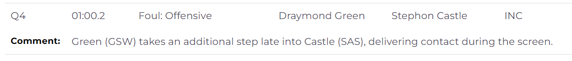 第二次是漏判比赛最后1分钟,双方107-107打平,追梦非法掩护,与卡斯尔发生了身体接触。裁判漏吹,勇士获利。