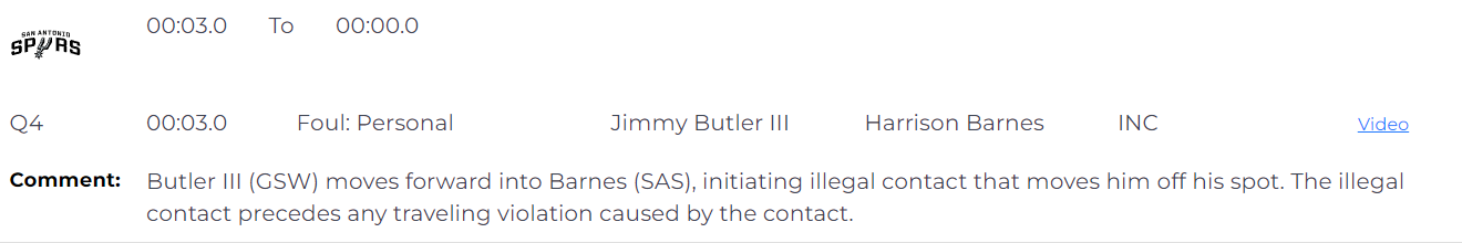 第四次同样是漏判,比赛最后3秒,双方111-111打平,巴特勒向前移动并撞向巴恩斯,造成非法接触并将其从原位撞开,这个非法接触发生在任何可能由此导致的走步违例之前。这次漏判,同样是勇士获利。