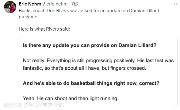 里弗斯:利拉德正在积极康复 已能练习投篮进行轻微跑步