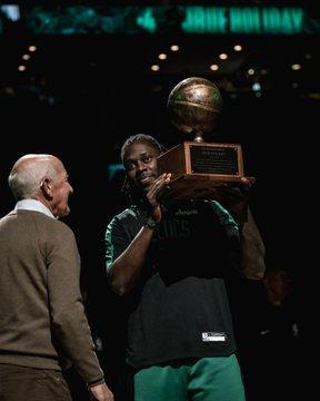 据球队介绍,这个年度荣誉授予球队中最能体现凯尔特人队标准的球员或教练。德里克-怀特上赛季获得了该奖项,杰森-塔图姆和杰伦-布朗也曾获此年度殊荣。这是霍乐迪加盟球队以来首次获此荣誉。比赛前,凯尔特人队老板格鲁斯贝克在球场中线处与霍乐迪见面,并将奖杯颁发给了他。