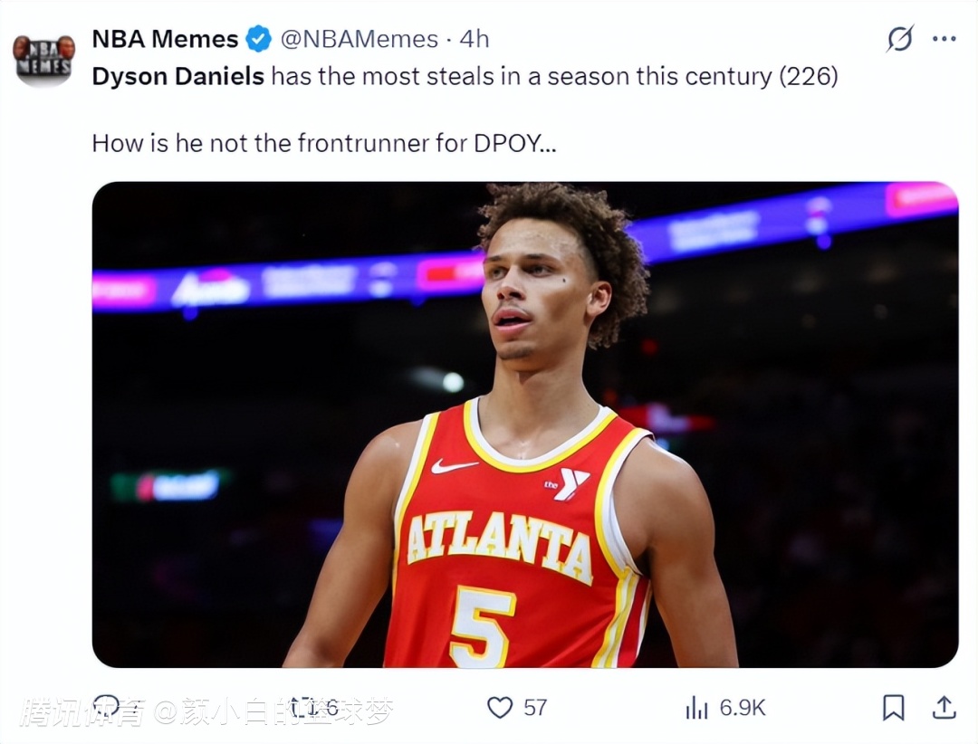 戴森在昨夜的比赛中已经完成了个人单赛季226次抢断,他超越了02-03赛季的艾弗森225次成为本世纪的抢断王,但他并不是DPOY的领跑者。他还差5次抢断就超过手套佩顿95-96赛季创造的231次抢断。