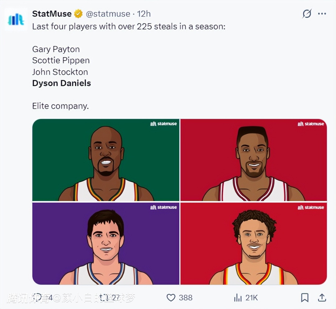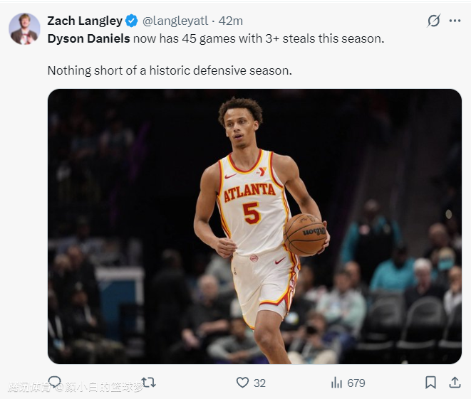 上半场戴森-丹尼尔斯的个人进攻状态不佳,7中1+三分3中0只拿到2分,不过他防守端的表现依旧无懈可击,6篮板3助攻2抢断2盖帽,他距离佩顿的纪录只剩下3次抢断而已。