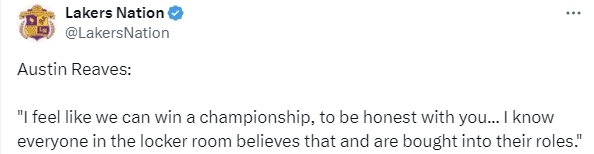 里夫斯:相信湖人能赢下总冠军 我能取得现在成绩要感谢詹姆斯