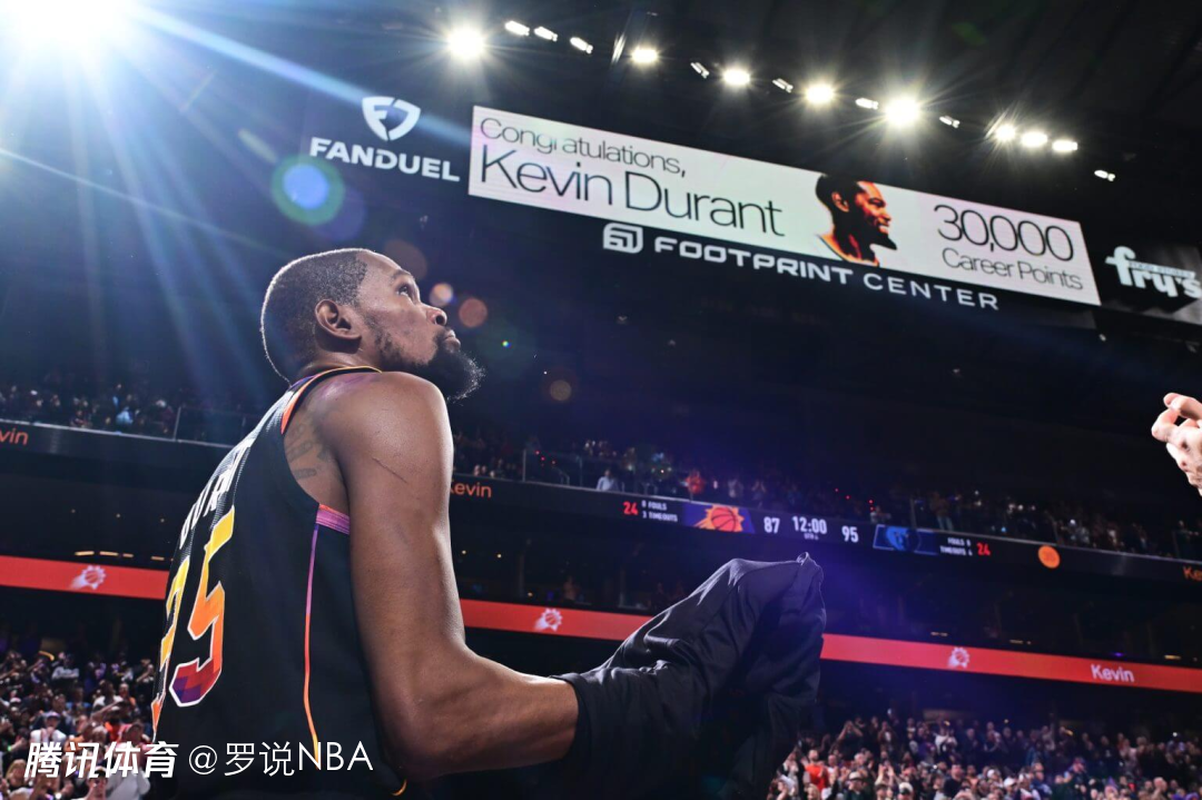 2024年1月对阵公牛队的比赛中,杜兰特命中一记制胜跳投,滞空时宛如乔丹附体;2月,他的职业生涯总得分突破30000分,成为NBA历史上仅有的8位达成这一里程碑的球员之一;上个月,他在对阵快船队的比赛中,末节独得19分,率队完成逆转。