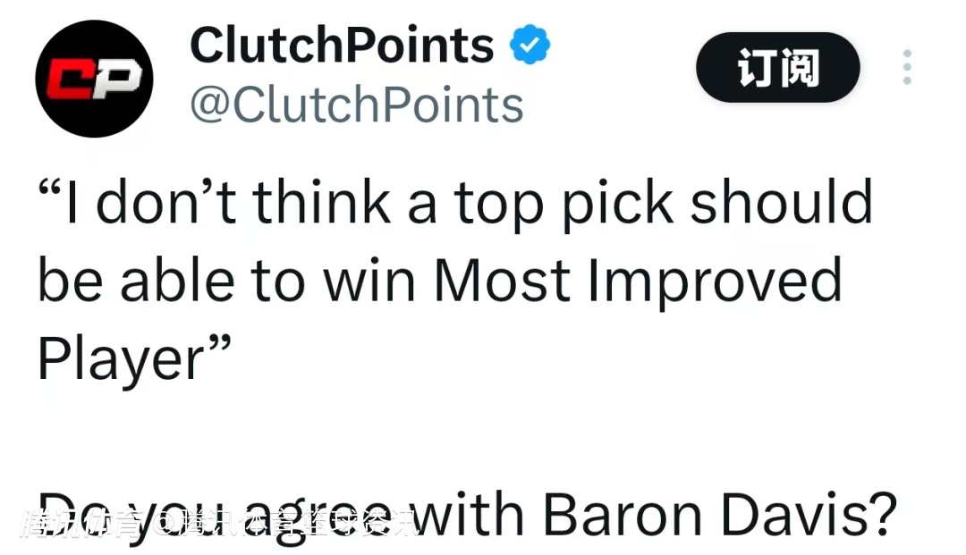 2025-04-13 08:10北京时间4月13日,前NBA球员巴朗-戴维斯在参加勇士球星格林的播客节目时,对于本赛季进步最快球员奖项评选发表个人观点。