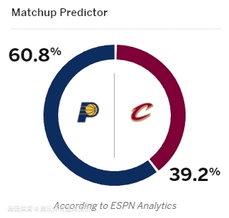 骑士队胜率39.2%,步行者队胜率60.8%。