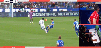 89分钟,贝林厄姆横传受阻,自己射门被挡出。