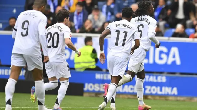 2025-04-14 00:30北京时间4月13日晚,西甲第31轮中,皇马客场1-0小胜阿拉维斯,联赛客场两连胜,积分落后巴萨4分,排西甲第二。卡马文加远射打入唯一进球,姆巴佩得到皇马生涯首张红牌,主队后卫马努-桑切斯同样染红。