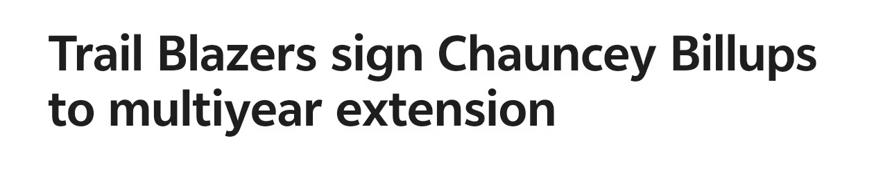 Shams:开拓者与比卢普斯达成多年期续约合同协议
