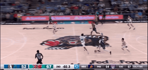 次节比赛开始,哈迪抛投得手,赫夫2罚全中,马丁急停跳投,斯蒂文斯和赫夫连得5分。独行侠一度陷入得分荒,灰熊打出一波15-2的进攻高潮,成功拉开分差到23分。克里斯蒂连续得分为独行侠打破僵局,灰熊最后1分59秒一分不得,独行侠打出一波10-0的进攻高潮,缩小分差到13分进入下半场。半场比赛结束,独行侠54-67落后灰熊。