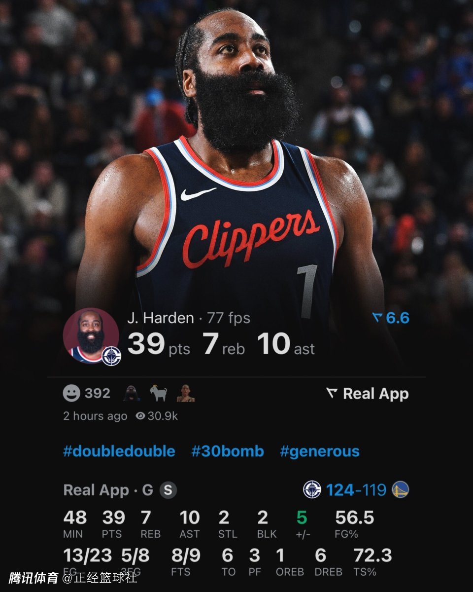 哈登生涯16年全部打入季后赛!创现役第一人 连续两年率快船50胜太强