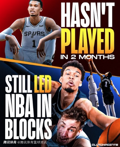 176次盖帽!文班亚马仅打46场仍领跑盖帽榜 缺阵36场无缘官方盖帽王