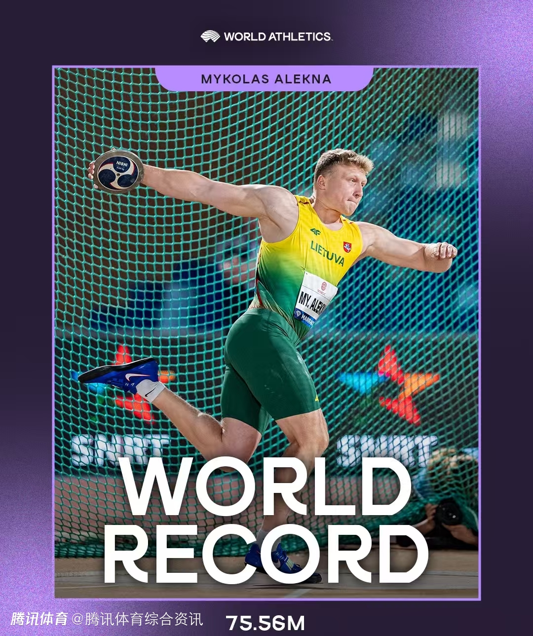 打破男子世界纪录!立陶宛选手阿莱科纳成首位突破75米铁饼选手