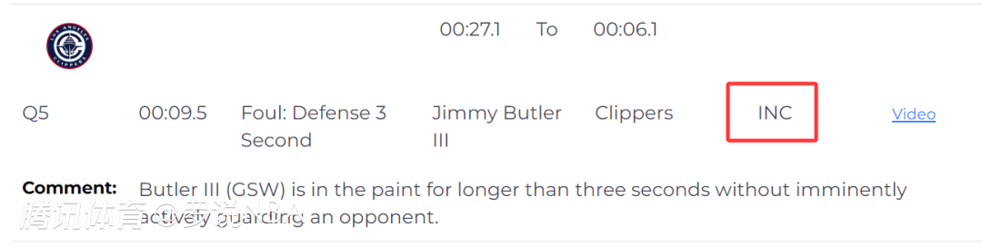 唯一一次漏判出现在距离加时赛结束还有9.5秒,巴特勒在己方禁区内没有积极防守对方球员时间超过三秒,这是一次漏吹的防守三秒违例,勇士获利,快船吃亏。官方显示,审核的四分钟的其他时段,余下判罚都是正确无误的。