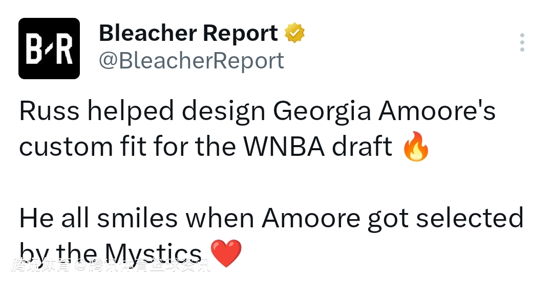 2025-04-15 09:00北京时间4月15日,WNBA选秀正在进行中,乔治娅-阿莫尔被华盛顿神秘人以第6顺位选中。掘金球星威斯布鲁克此前帮助阿莫尔设计参加选秀时的定制服装,他也出现在选秀现场。当阿莫尔被华盛顿神秘人队选中时,他满脸笑容。