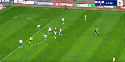 第90分钟,刘洋左边路送出精准传球,彭欣力禁区内左侧停球并摆脱防守球员后顶球传小禁区前中路,谢文能停球后转身左脚抽射得手,泰山5-0领先。