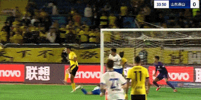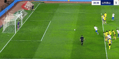 第79分钟,泰山队主罚右边路任意球到后门柱,卡扎尔跟进包抄空门竟然打飞。