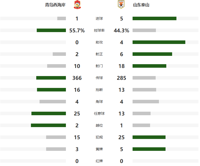 泰山取得3连胜,5胜1平1负积16分暂列积分榜首位;西海岸遭遇赛季首败,2胜3平1负积9分暂列第7位。下轮比赛,泰山客场挑战国安,西海岸主场对阵大连英博。