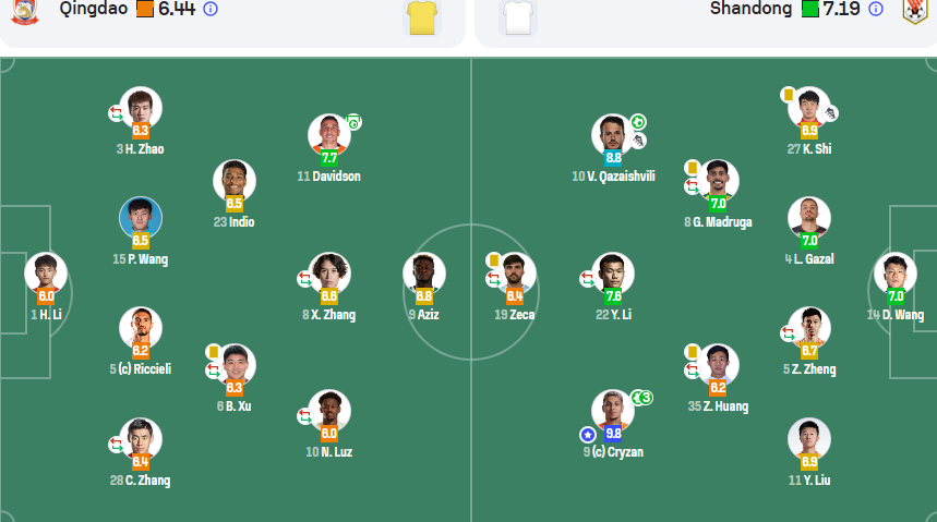 后卫:3-赵宏略(58’19-丁海峰)、5-里切利(F)、15-王鹏、28-张呈栋(73’20-何龙海)