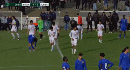 上半场双方互有攻势但未能取得进球,法国队加布表现活跃屡造威胁。而第30分钟,U16国足折损大将,何思凡受伤被换下,王非尼亚替换他登场。