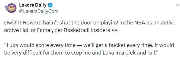 2025-04-16 08:00北京时间4月16日,据Basketball Insiders报道,前湖人球员德怀特-霍华德作为一名现役的准名人堂成员,尚未对在NBA继续打球一事关上大门。